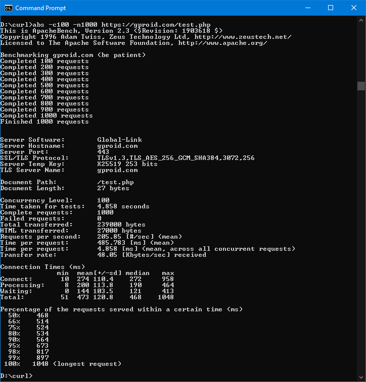 abs -c100 -n1000 https://test.gproid.com/test.phpApache/2.4.53:
